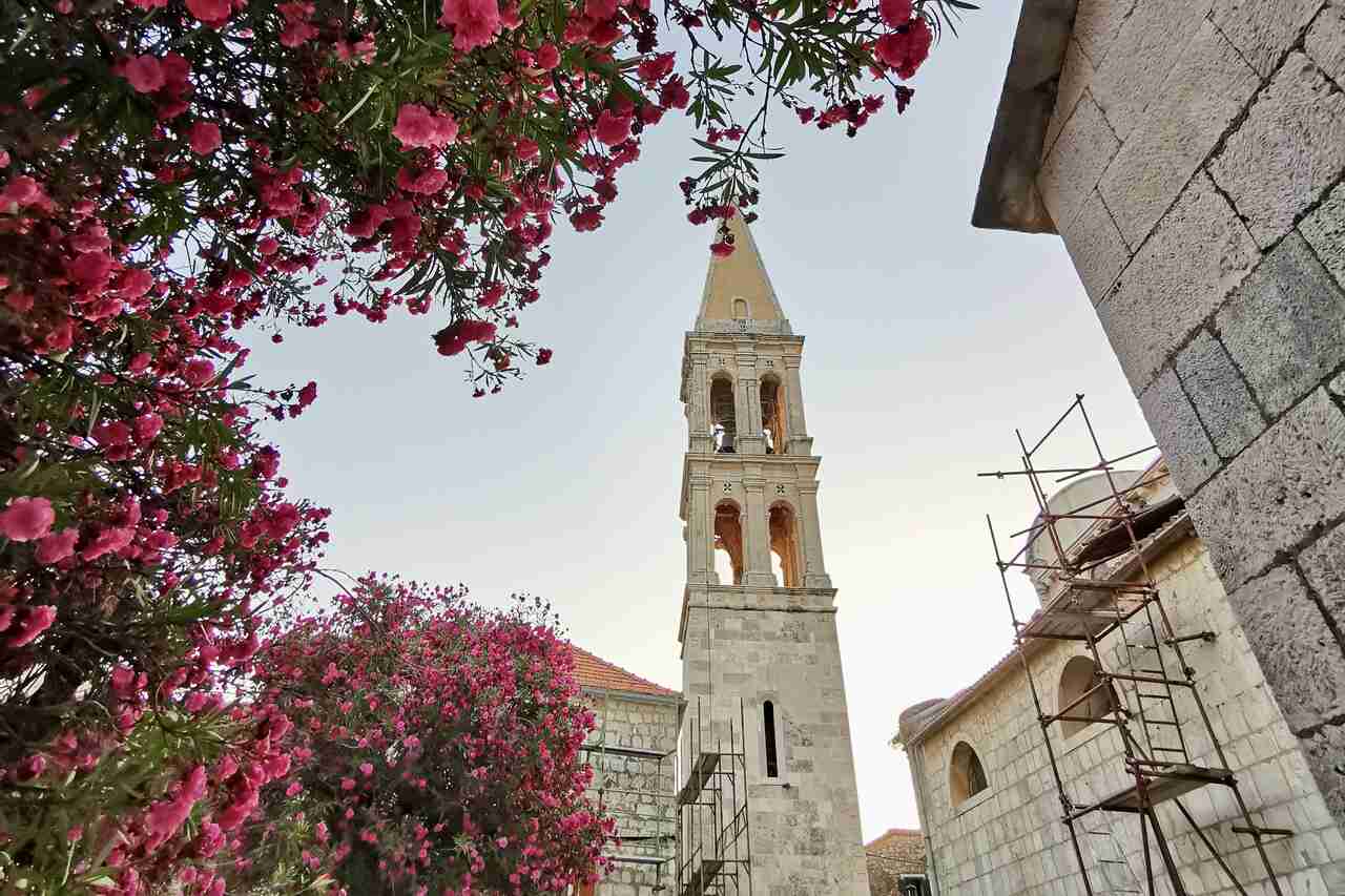 Dla chętnych – krótki spacer na wzgórze z kamiennym kościółkiem, z którego rozciąga się widok na całą wyspę i lazurowe morze.